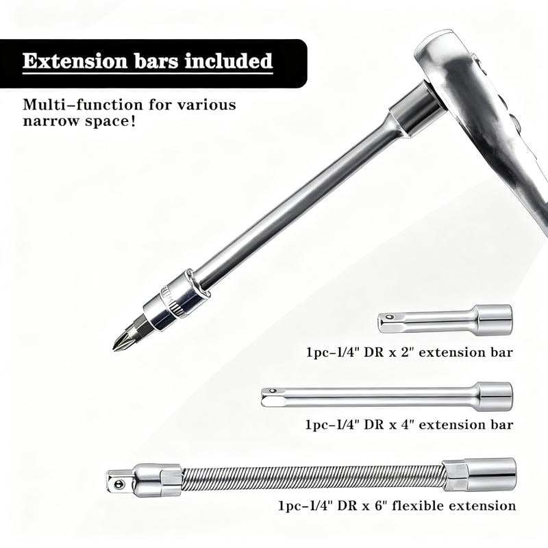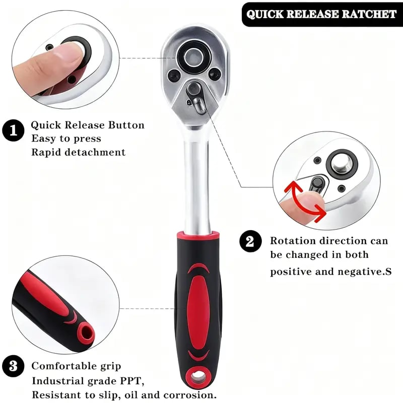 Crafted from premium chrome vanadium steel alloy, this socket set offers extraordinary hardness, toughness, and durability. Designed to handle high torque, it’s reliable for long-term use without bending or breaking like cheap alternatives.